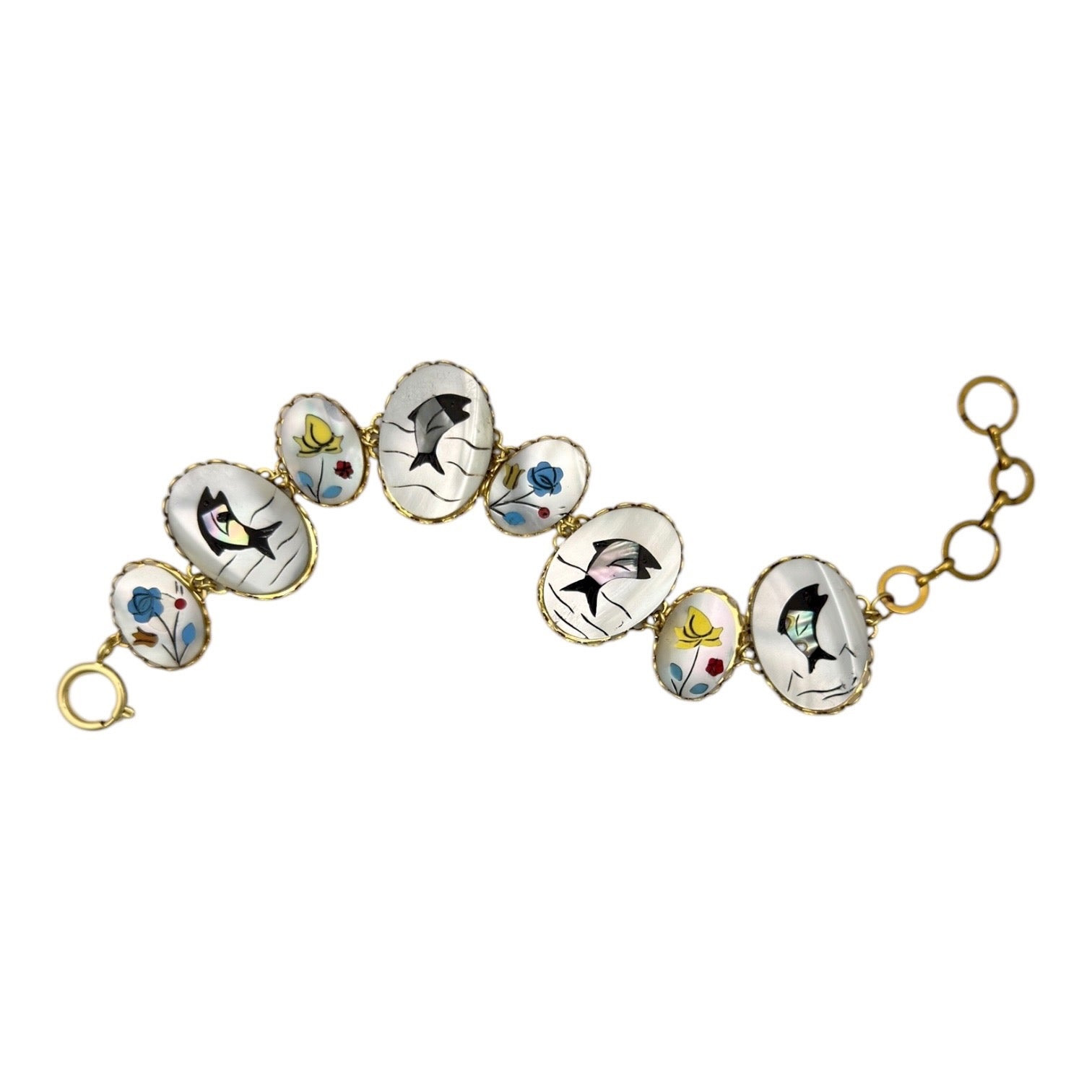 Discover the Vintage Mother-of-Pearl Cabochon Bracelet Collection, handcrafted one piece at a time in our Idaho studio. Each bracelet features genuine vintage or dead-stock mother-of-pearl cabochons—carefully restored, hand-set, and linked together to create a luminous, heirloom-inspired piece.