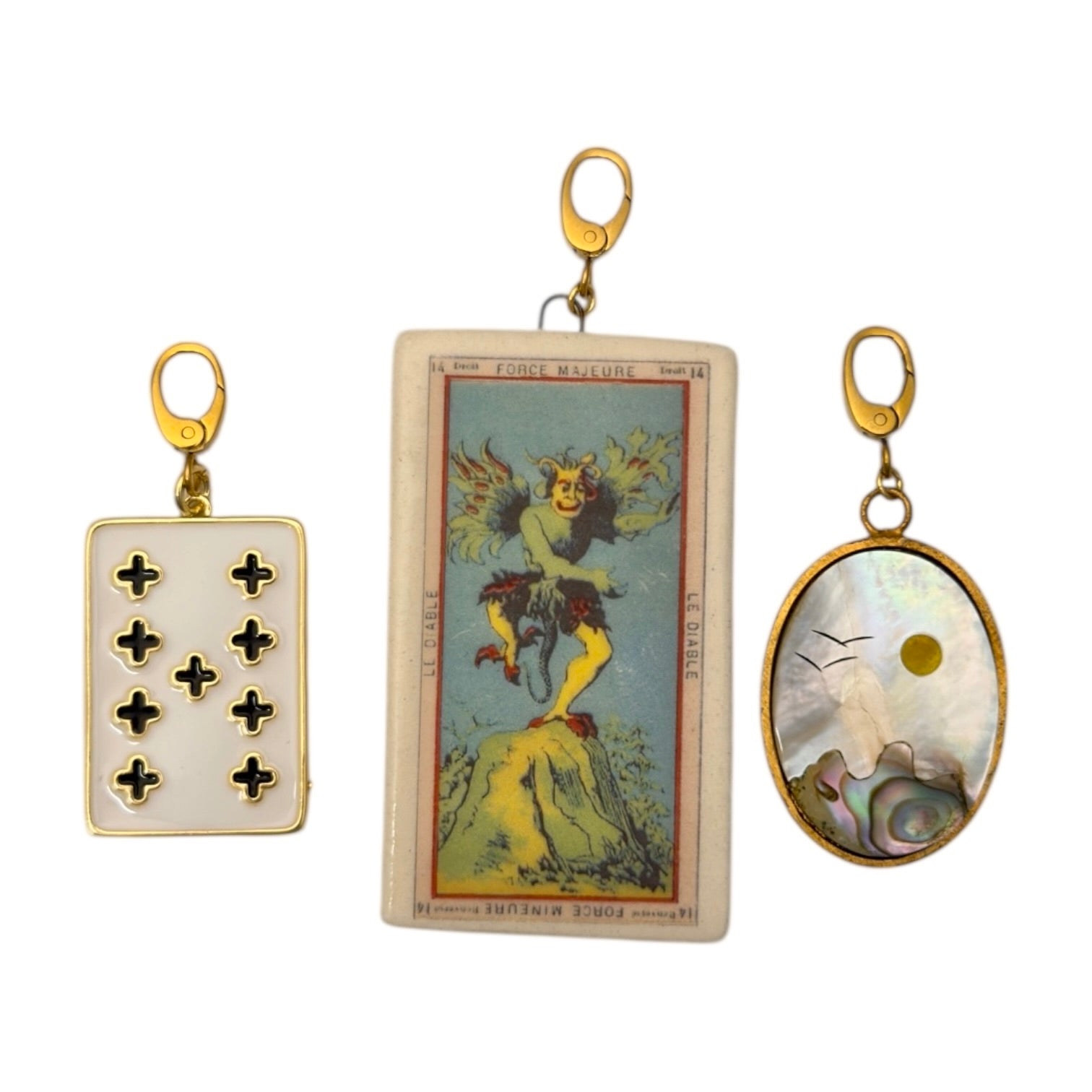 Materials: Ceramic charm, Deadstock and new gold plated charms, PVD anti-tarnish gold clip.