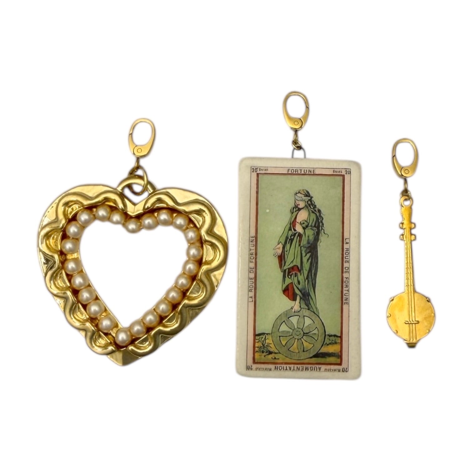 Materials: Ceramic charm, Deadstock and new gold plated charms, PVD anti-tarnish gold clip.